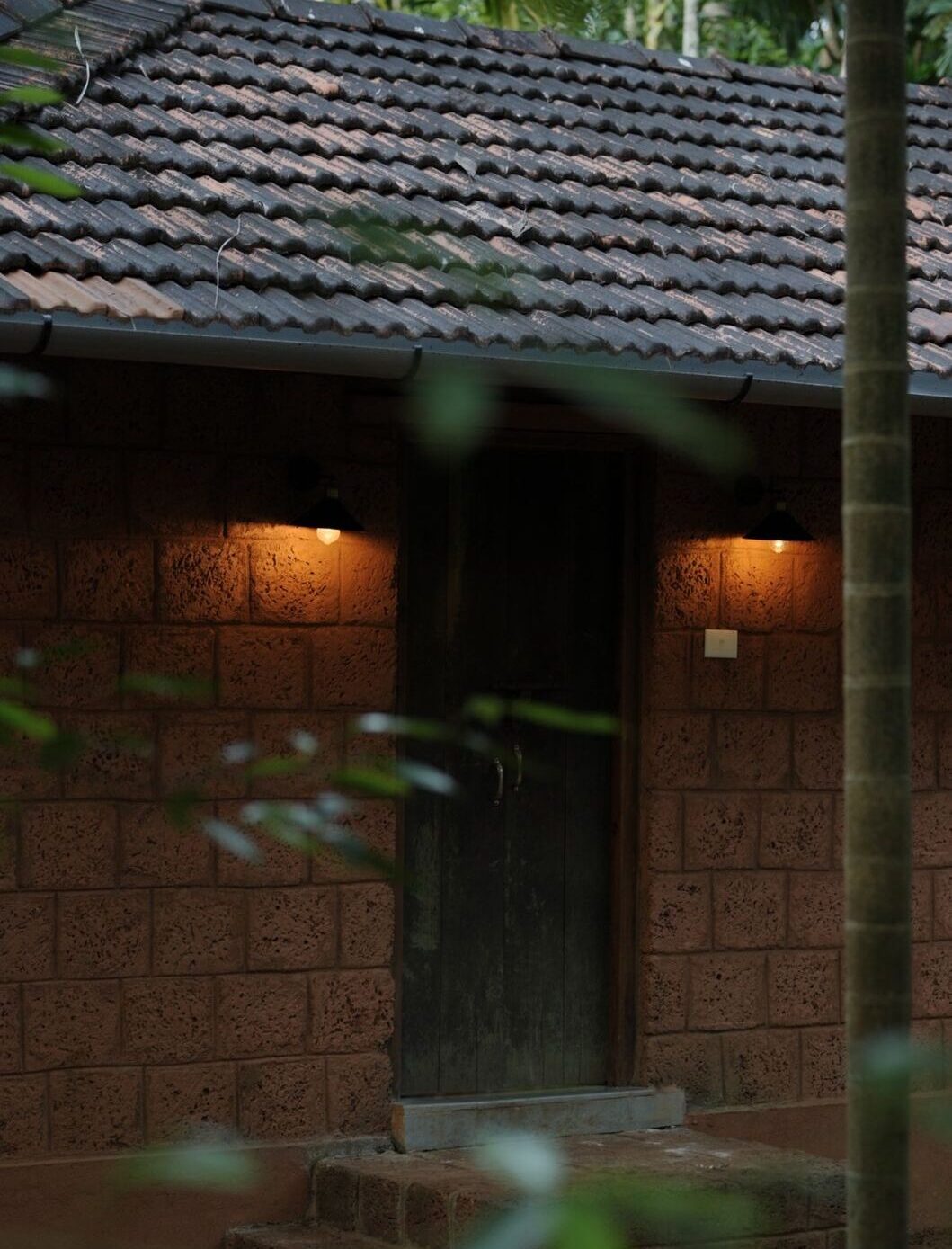 Located in the Netravali region of the Western Ghats, Arika rests at the heart of a working farm, surrounded by forested hills and open skies. A river flows along the edge of the land, carrying cool air and quiet life through the landscape. Here, peace is not created — it already exists. The cottage is shaped to keep you close to nature and far from distraction. The design softens the line between indoors and outdoors, opening naturally to fields, sky, and gentle movement in the air. You remain sheltered, yet fully present — with light, breeze, birdsong, and stillness flowing through the space. The interiors are calm and uncluttered. In the bathroom, the floor is finished with smooth river stones and natural pebbles, echoing the feeling of bathing beside a gentle stream — grounded, tactile, and quietly premium.